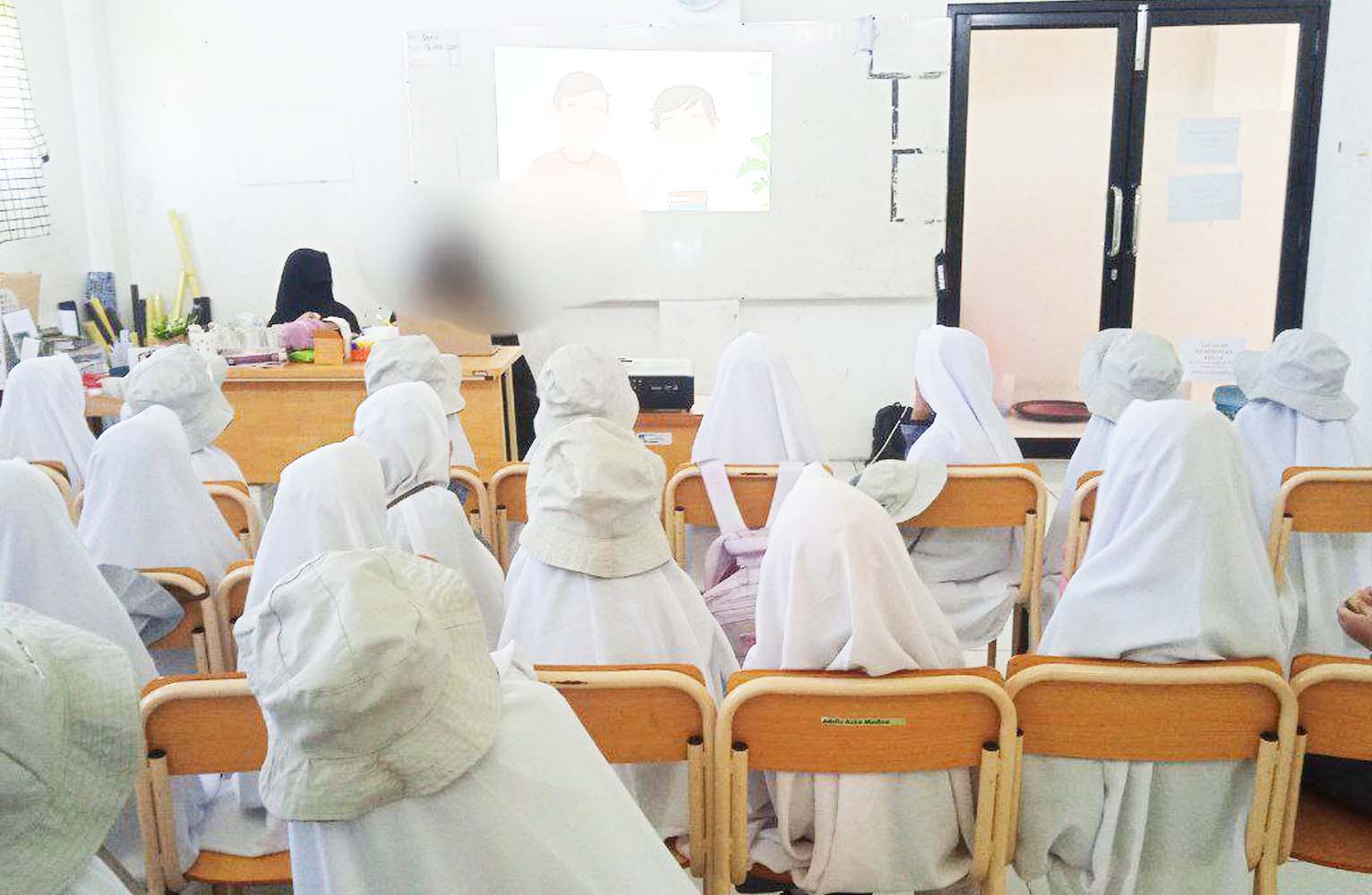 Kegiatan belajar mengajar di kelas putri