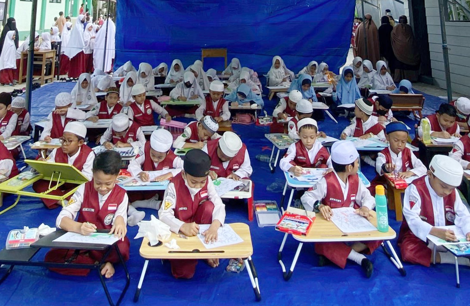 Antusias siswa putra dan putri dalam acara menggambar